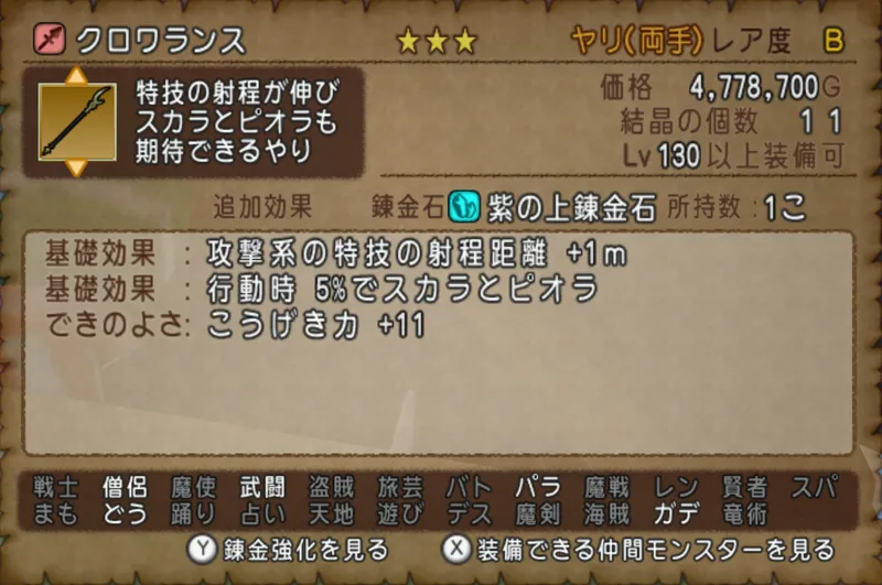 LV130 クロワランスは攻撃特技の射程を伸ばし行動時スカラ&ピオラ付きです。